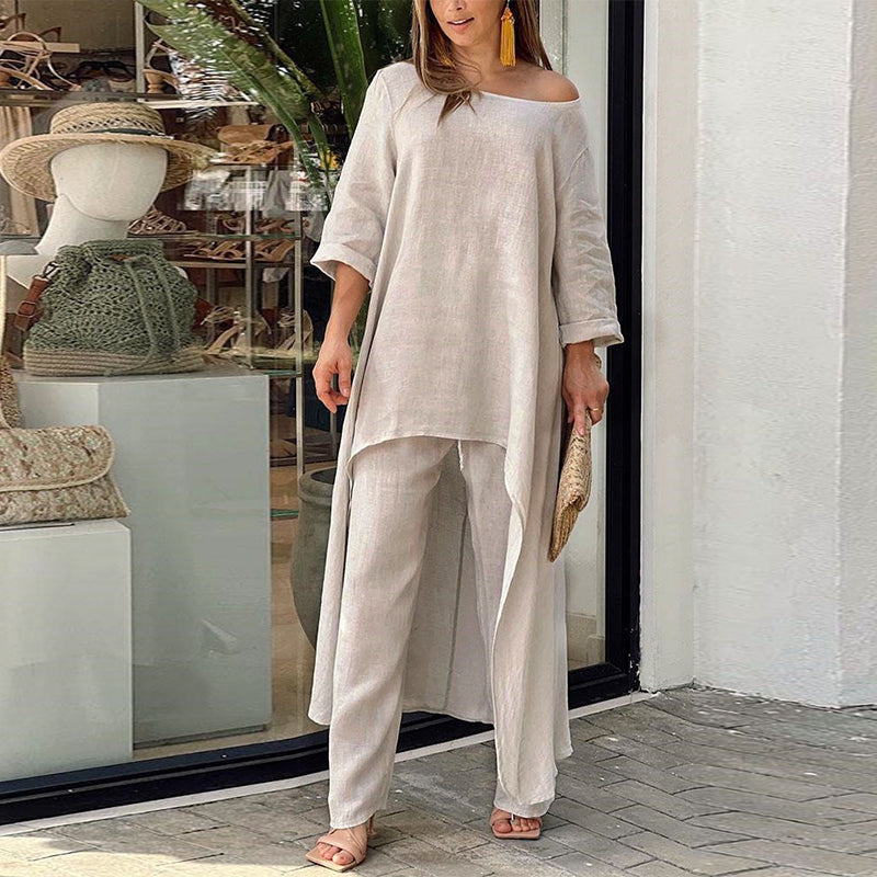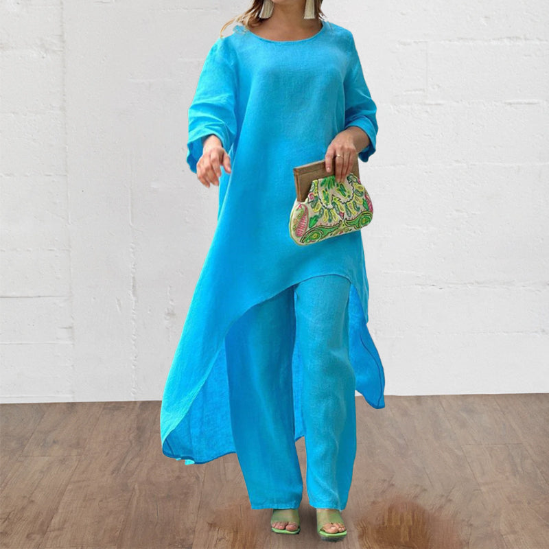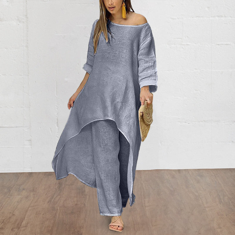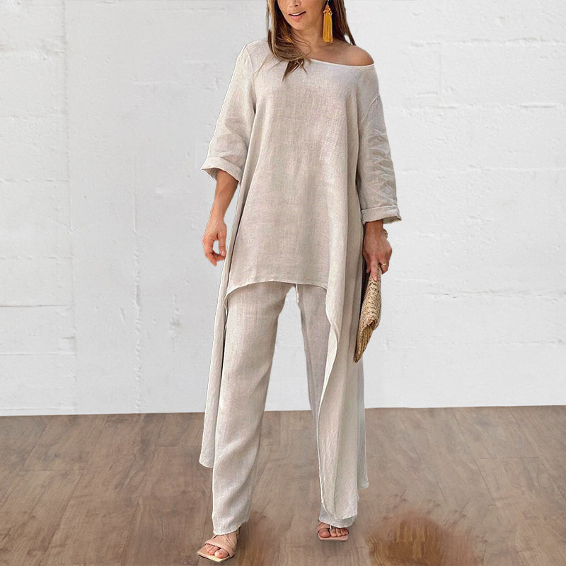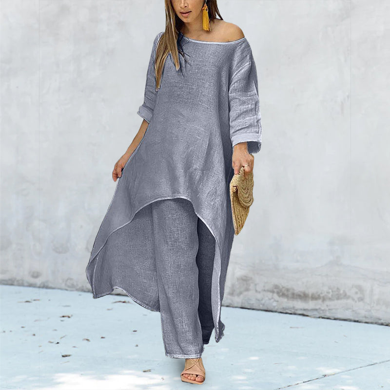 Hosenanzug mit unregelmäßigem Oberteil und weitem Bein