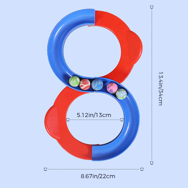 • Einfach zu spielen: Halten Sie beide Hände an den Seiten des Griffs, üben Sie das Öffnen und Schließen, machen Sie sich mit der Aktion vertraut und rollen Sie den Ball auf der Bahn. Wenn der Ball bis zum Ende der S-förmigen Bahn rollt, ändern Sie die Richtung der Bahn, damit sich die Kugel weiter auf der Bahn bewegt, versuchen Sie, nicht herunterzufallen.